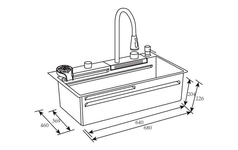 Acero inoxidable 304 , Diseño elegante , Facil instalacion , Grifo flexible giratorio , Sistema de drenaje automatico